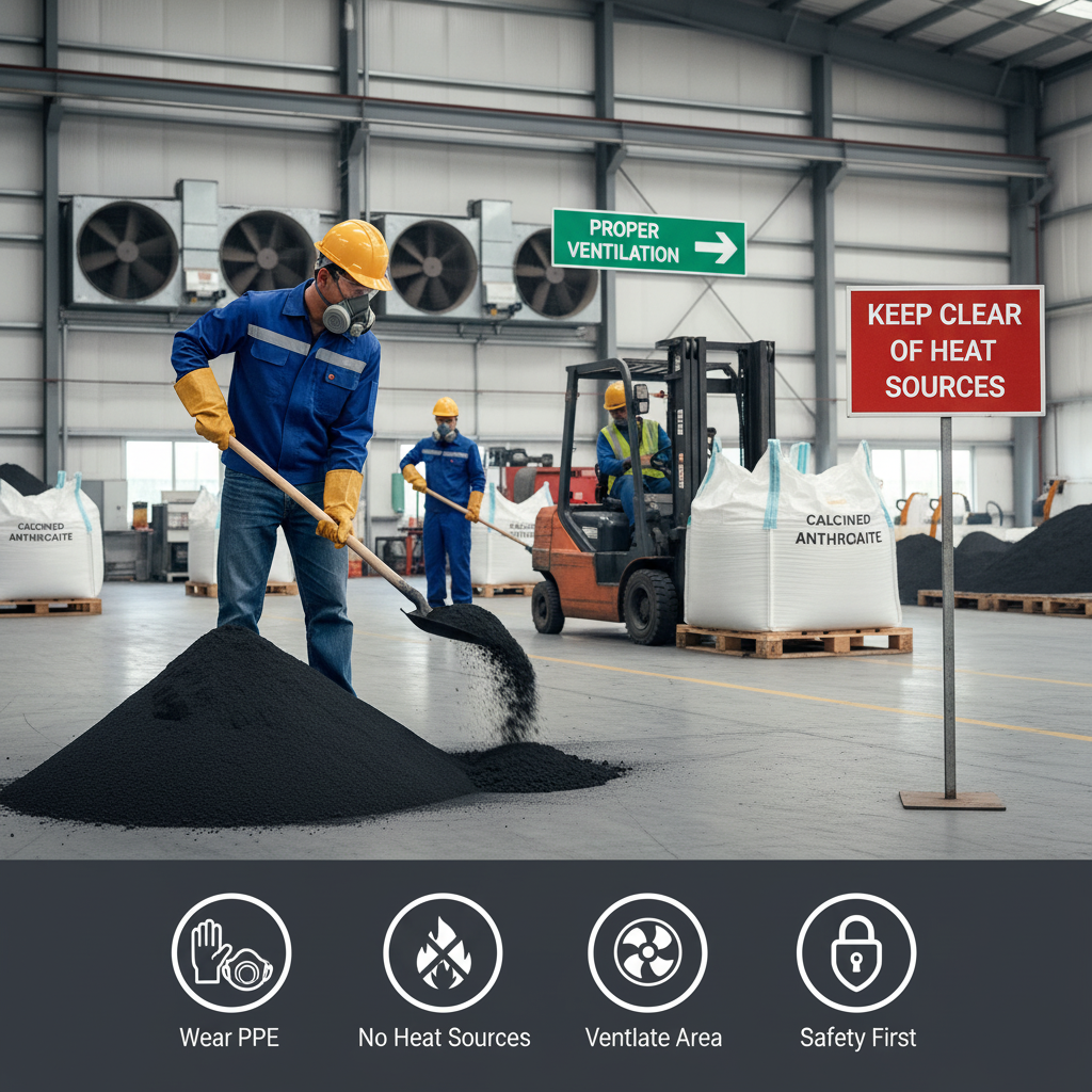 آنتراسیت کلسینه یک ماده سوختی است و در صورت تماس با منابع حرارت مستقیم یا جرقه ممکن است خطرناک باشد. هنگام جابه‌ جایی و تخلیه، استفاده از دستکش، ماسک و تجهیزات حفاظتی توصیه می‌ شود.